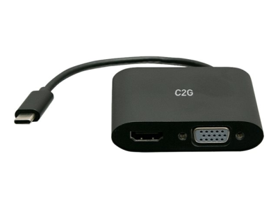 C2G USB C to HDMI & VGA Dual Monitor Adapter - 4K 30Hz - Black - Näyttösovitin - 24 pin USB-C uros to HDMI, HD-15 (VGA) naaras - musta - 4K 30 Hz -tuki