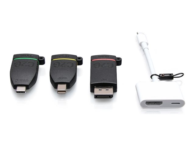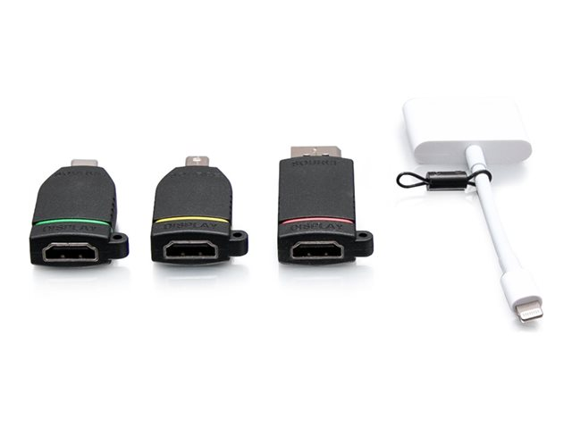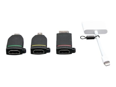 C2G Retractable Universal Mount 4K HDMI Adapter Ring with Color Coded Mini DisplayPort, DisplayPort, USB-C, and Lightning - Videosovitinpakkaus - musta - 4K-tuki