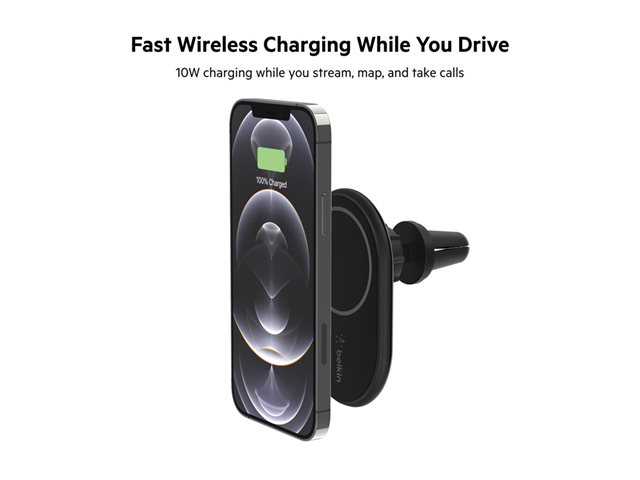 Belkin BoostCharge - Auton langaton latausteline - 10 watti(a) - musta malleihin Apple iPhone 12, 12 mini, 12 Pro, 12 Pro Max WIC004BTBK-NC