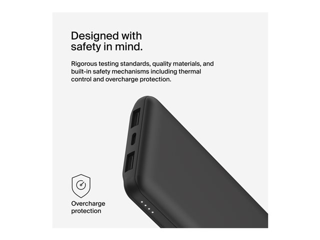 Belkin BoostCharge - Virtapankki - 10000 mAh - 15 watti(a) - 3 lähtöliittimet (24 pin USB-C, 2 x USB) - musta