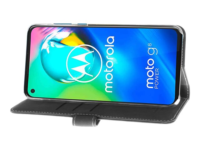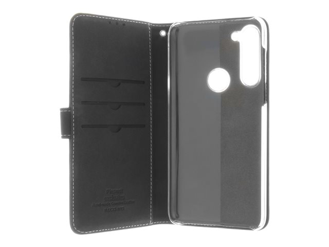 Insmat Exclusive Flip Case - Läppäkansi matkapuhelimelle - aito nahka, polyuretaani, polykarbonaatti - musta malleihin Motorola Moto G8 Power