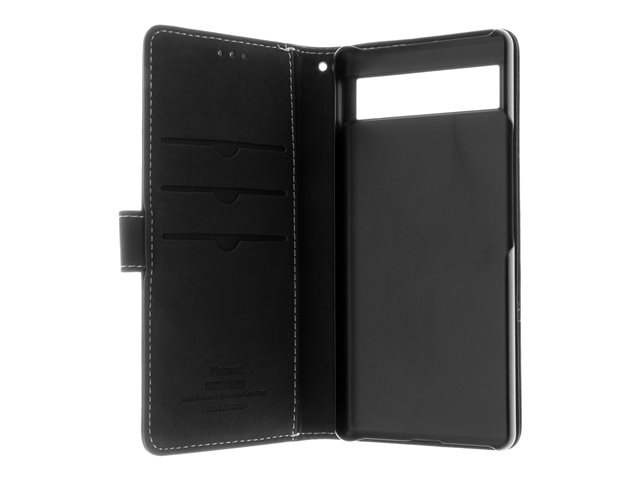 Insmat Exclusive - Läppäkansi matkapuhelimelle - aito nahka, polykarbonaatti, kartonki + paperi + alumiinifolio - musta malleihin Google Pixel 7a