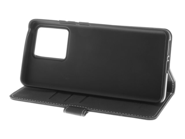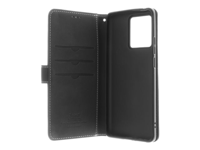 Insmat - Läppäkansi matkapuhelimelle - aito nahka, polykarbonaatti, kartonki + paperi + alumiinifolio, puuvillaompeleet - musta malleihin Motorola Moto Edge 40