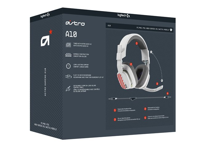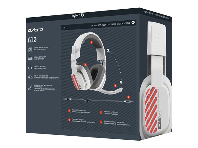 ASTRO Gaming A10 Gen 2 - Kuulokkeet + mikrofoni - täysikokoinen - langallinen - 3,5 mm jakkiliitin - valkoinen