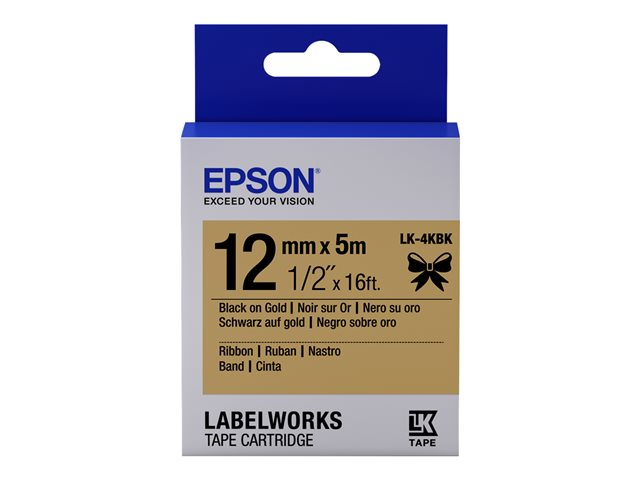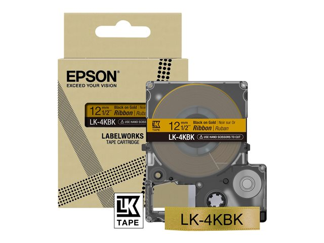 Epson LabelWorks LK-4KBK - Musta kullalla - Rulla (1,2 cm x 5 m) 1 kasetti(a) etikettiteippi malleihin LabelWorks LW-1000, 300, 400, 600, 700, 900, K400, Z5000, Z5010, Z700, Z710, Z900