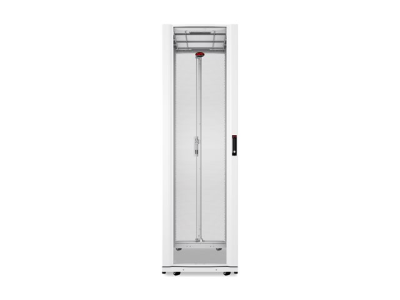 | Ominaisuudet | Korkeussäädettävät jalat, säädettävä syvyys, jaettu takaovi, sisäinen kaapelinhallinta, rei'itetyt etuovet, säädeltävät pystysuuntaiset asennuskiskot, integroitu sähkömaadoitus |